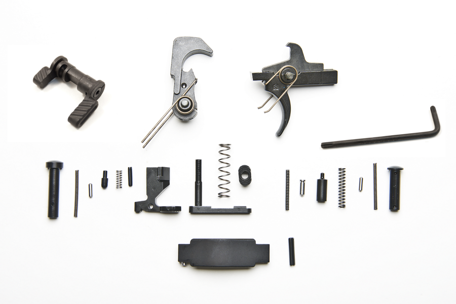 While not strictly limited to Umbrella receivers, we put this kit together as a high quality option for customers looking to build-out their forged, mil-spec type AR-15 lowers without having to chase down individual components. This Umbrella kit includes all necessary parts to complete your forged lower receiver less the required stock assembly (receiver extension, end plate, extension nut, buffer, action spring, stock). In addition to the high quality individual pieces, this kit includes ALG/Geissele’s Quality Mil-Spec (QMS) hammer and trigger set, Battle Arms Development’s BAD-ASS ambidextrous selector, B5 Systems’ oversize swing down trigger guard, and Umbrella’s own Grip 23. For those not familiar, Geissele’s QMS trigger is a fantastic but economical upgrade to the standard mil-spec AR-15 trigger. The pull is similar to the stock trigger but much smoother with a clean break right around 6 pounds. Even so, this trigger meets specifications for the M4 carbine and as such complies with duty regulations requiring mil-spec parts. And the Battle Arms Development ambidextrous 90° selector represents the best ambi upgrade for the platform. B5 Systems’ aluminum trigger guard provides an oversized profile vs that of the straight mil-spec guard. With this design, B5 decided to maintain the fold-down capability of the original but this leaves the familiar gap between grip and trigger guard. For those bothered by this space, an aftermarket filler is advised. Parts kit includes the following components: As with all Umbrella products, these kits are made to the finest standards and carry an unconditional guarantee against material defect and manufacturing failure. Assembly by a qualified Armorer is required. Note: If you own, or have ordered an Umbrella billet lower, this is not the kit for that receiver. The Umbrella billets include a number of parts already, some of which are again included in this kit. To complete your Umbrella billet lower, look for our “Billet” parts kit.